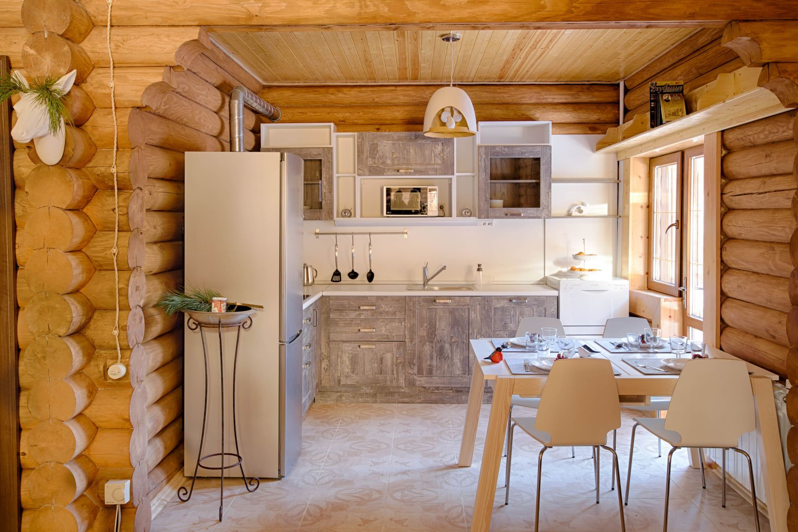 Каждый двор, вернее, дворик состоит из нашей родной избушки, сложенной мастерами из настоящих таёжных брёвен, а также небольшой прилежащей территории, на которой можно разместить свой автомобиль и здесь же в кругу друзей и близких посидеть за столиком под сенью фруктового дерева.