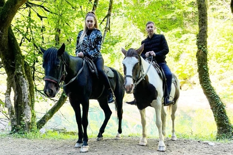 Маршрут очень лёгкий, без крутых подъёмов и спусков. Подходит начинающим всадникам и маленьким детям. Мы проедем по тенистому лесу вдоль реки Кудепста, совершим несколько переходом через реку и устроим привал. Летом здесь можно купаться, зимой погулять и, конечно, сфотографироваться с лошадьми.
