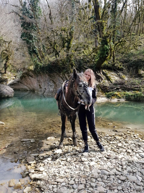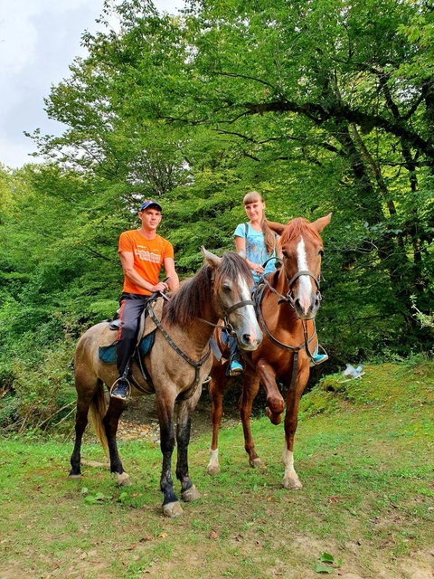 Дорога проходит по полям бывшего совхоза Черномор, где произрастали орешники и другие культуры. В данном конном туре вы увидите удивительные скалы, образовавшиеся миллионы лет назад, когда эти места были дном древнего океана Тетис. Движение в основном в тени леса, переход горной речки Псахо.
