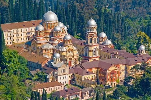 Новоафонский мужской монастырь - действующий, он расположен неподалёку от пещеры и выделяется яркой архитектурой.